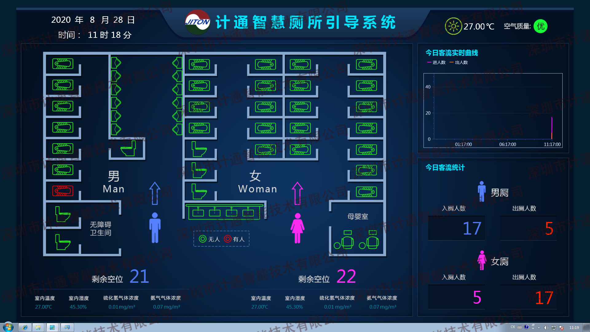 3、蹲位監(jiān)測:動態(tài)監(jiān)測廁位占用情況,可通過指示燈/屏實時顯示。