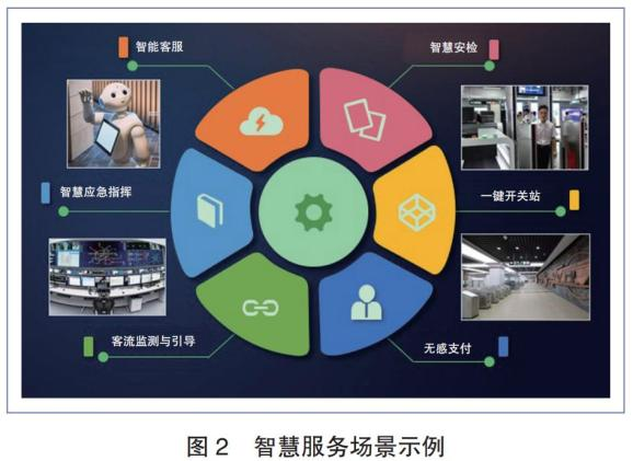 智慧的內(nèi)涵是感知、記憶、理解、分析、判斷、升華等能力,其在城市軌道交通行業(yè)里涉及最多的領(lǐng)域是服務(wù)與調(diào)度,如智慧客服、智慧安檢、智慧應(yīng)急指揮、一鍵開關(guān)站、客流監(jiān)測與引導(dǎo)、無感支付等(圖 2)。目 前,上海、廣州和深圳等城市的軌道交通率先建立了智慧車站示范站,在行業(yè)里起到了良好的帶動作用。隨著中國城市軌道交通協(xié)會發(fā)布《中國城市軌道交通智慧城軌發(fā)展綱要》,其他城市也在加快智慧車站的研究和建設(shè)。