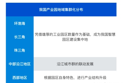 隨著科技以及各地信息技術(shù)的發(fā)展,我國龐大的產(chǎn)業(yè)園區(qū)憑借著各自不同的優(yōu)勢(shì)、特色、資源,各自進(jìn)行產(chǎn)業(yè)升級(jí)以及智慧園區(qū)的建設(shè)。同時(shí),呈現(xiàn)出集群化的分布。根據(jù)不同地域進(jìn)行劃分。