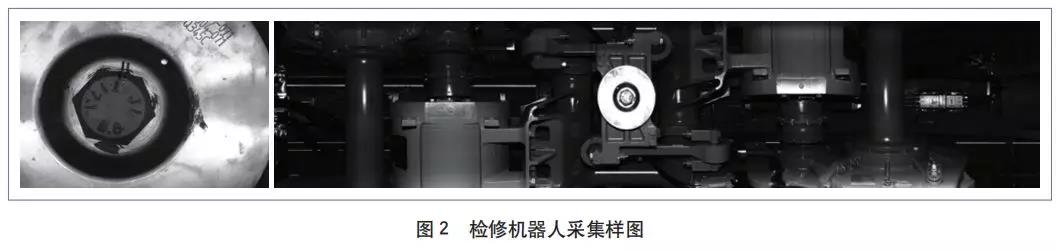 車底定位模塊分為面陣相機和線掃相機 2 部分,面陣相機用于定位車底設(shè)備,線掃相機用于采集車底設(shè)備圖像。此外,還應(yīng)用輪軸編碼器確保采集的車底圖像穩(wěn)定、不發(fā)生抖動。以圖 2 為 例,通過使用相機對車底設(shè)備進行高清拍攝,實現(xiàn)對設(shè)備異常形態(tài)、設(shè)備異常變化的智能監(jiān)測,從而快速識別故障點,確定故障位置及故障等級,給出故障判斷,引導(dǎo)人員使用與設(shè)備相對應(yīng)的檢修標準、工器具進行維修,最終實現(xiàn)故障的快速診斷和準確報警,提高檢修效率。