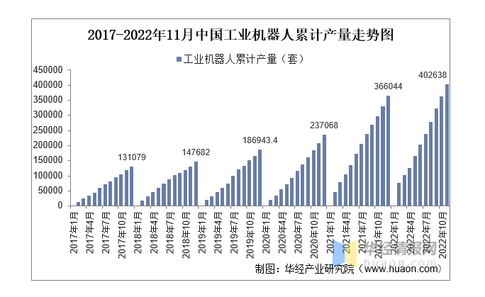 2017-2022年11月中國工業(yè)機器人累計產(chǎn)量走勢圖