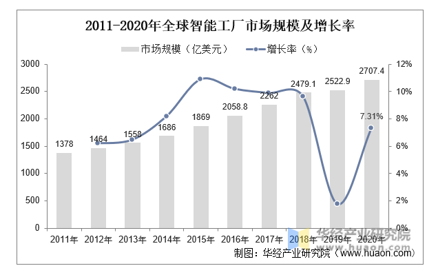 2011-2020年全球智能工廠市場規(guī)模及增長率