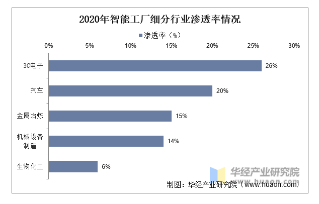 2020年智能工廠細分行業(yè)滲透率情況
