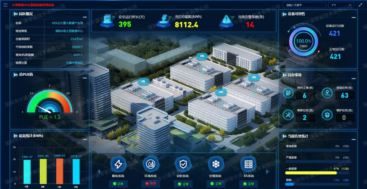 為中心機(jī)房的基礎(chǔ)設(shè)施,打造集中、統(tǒng)一的智能監(jiān)控?cái)?shù)字化管理平臺(tái)。該平臺(tái)集成動(dòng)環(huán)監(jiān)控、資產(chǎn)管理、安防、能源、IT、BA等各專業(yè)系統(tǒng)及綜合運(yùn)維系統(tǒng),實(shí)現(xiàn)對(duì)中心機(jī)房集中、統(tǒng)一、實(shí)時(shí)全面運(yùn)行掌控和統(tǒng)一的綜合運(yùn)維管理。