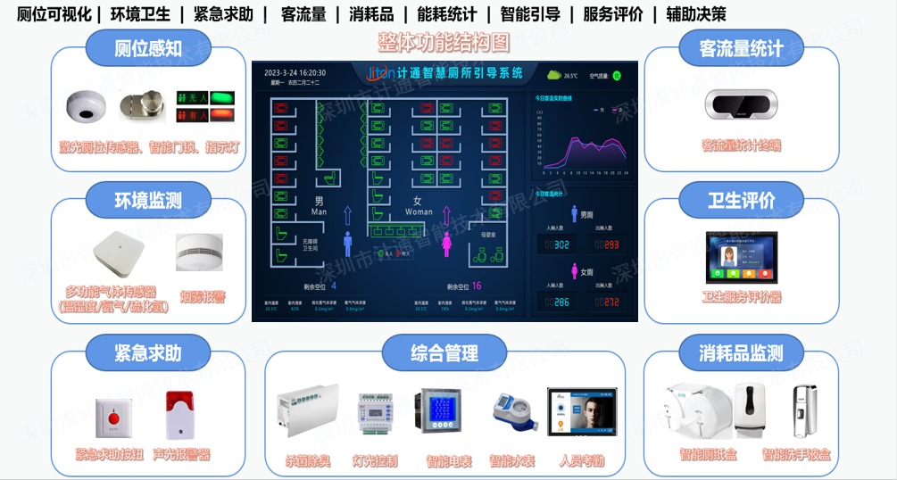 通過“物聯(lián)網(wǎng)+廁所”思維,運(yùn)用廁所大數(shù)據(jù)匹配不同場(chǎng)景的智能化需求,提供廁所異味監(jiān)控、節(jié)水節(jié)能、服務(wù)指引及其他個(gè)性化需求,實(shí)現(xiàn)了對(duì)廁所的智慧、精細(xì)管理。