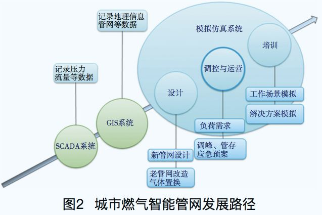 圖2是城市燃氣智能管網的發(fā)展路徑