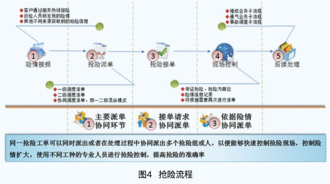 如何構建多元的險情來源體系?如何確保信息傳遞的準確性?如何確保搶險過程的合規(guī)高效可靠?這是智慧搶險所面臨的問題。為解決上述問題,有必要建設智慧化的搶險維修系統(tǒng),實現對整個搶險維修工作的智能管理。圖4是搶險流程說明。
