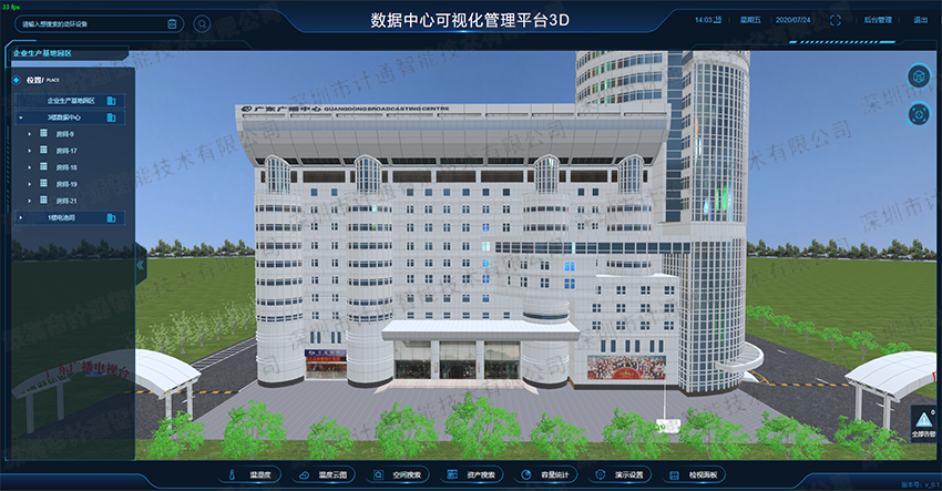 深圳計通3D可視化平臺:通過動態(tài)仿真和擬實環(huán)境的建立使用戶對虛擬機房或園區(qū)進行直感交互、實現(xiàn)優(yōu)化,可視化管理,以新穎的管理手段,大幅度提升數(shù)據(jù)中心機房的管理水平和效率,塑造全新機房監(jiān)控的形象。